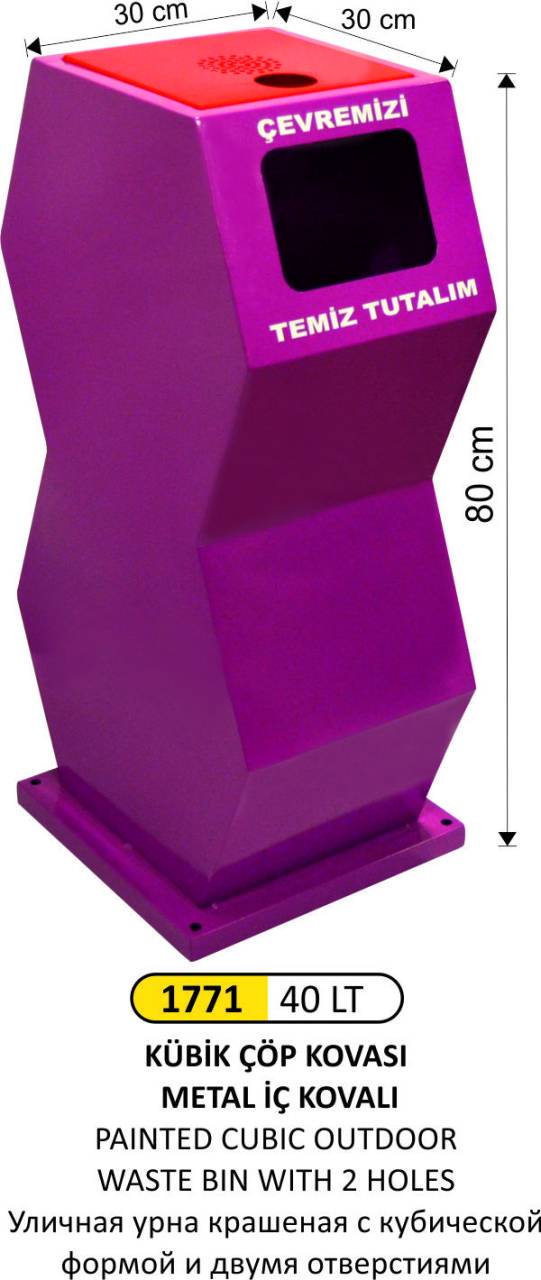 KÜBİK DIŞ MEKAN BOYALI ÇÖP KOVASI 2 DELİKLİ
